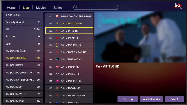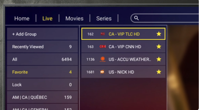 Parcourez la liste des chaînes et cliquez sur celle que vous souhaitez ajouter à vos favoris. Vous pouvez inclure vos chaînes locales ou vos préférées du best Canadian IPTV.
