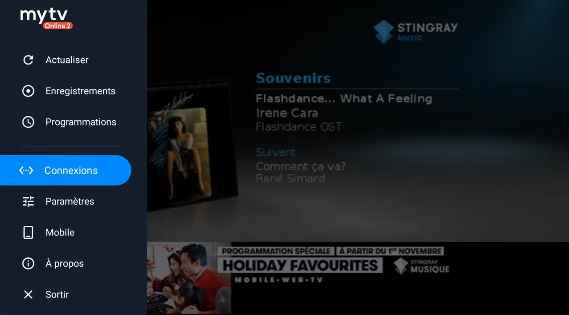 Pour commencer, ouvrez l’application MYTVOnline sur votre box ou appareil compatible.