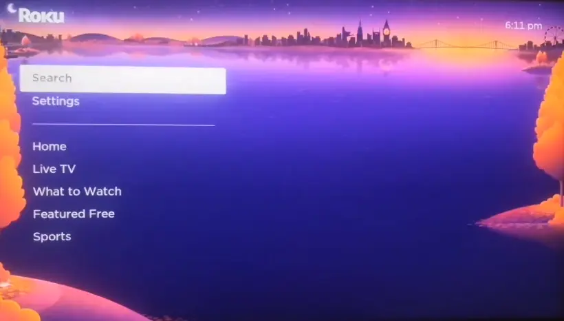 Allumez votre ROKU TV, puis allez dans la section Recherche depuis le menu principal.
